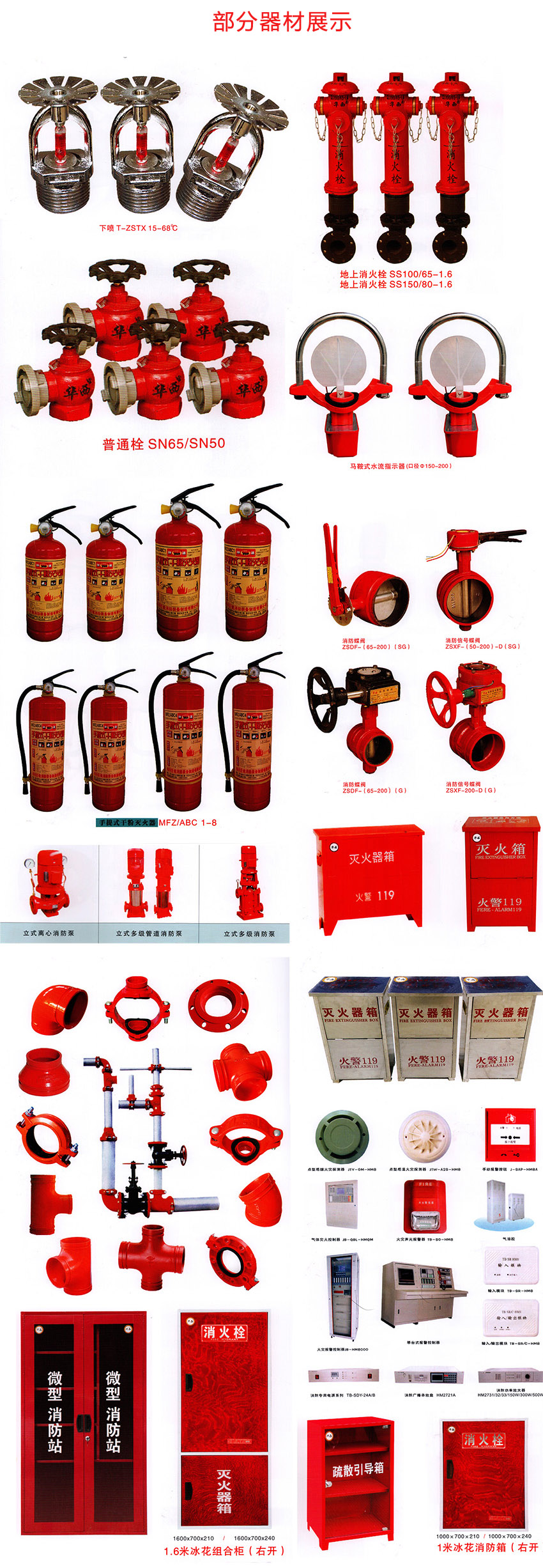 火災(zāi)自動(dòng)報(bào)警系統(tǒng)、消防應(yīng)急照明及疏散指示標(biāo)志、滅火器等。